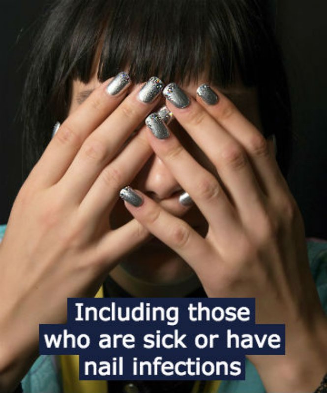 Like most businesses, most nail salons won't turn away paying costumers. Which means that people who are sick, have nail infections or foot fungus are being worked on next to you instead of being referred to an appropriate medical professional.